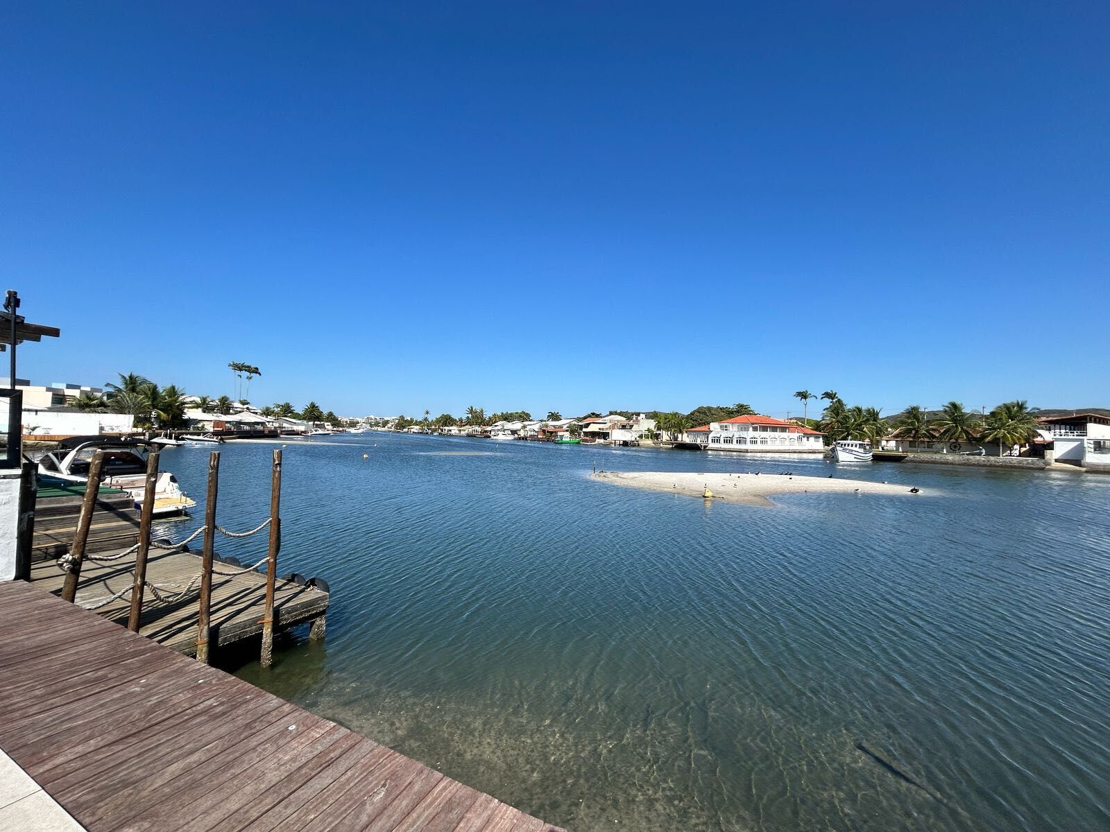 Condomínio possui piscina e vista para canal